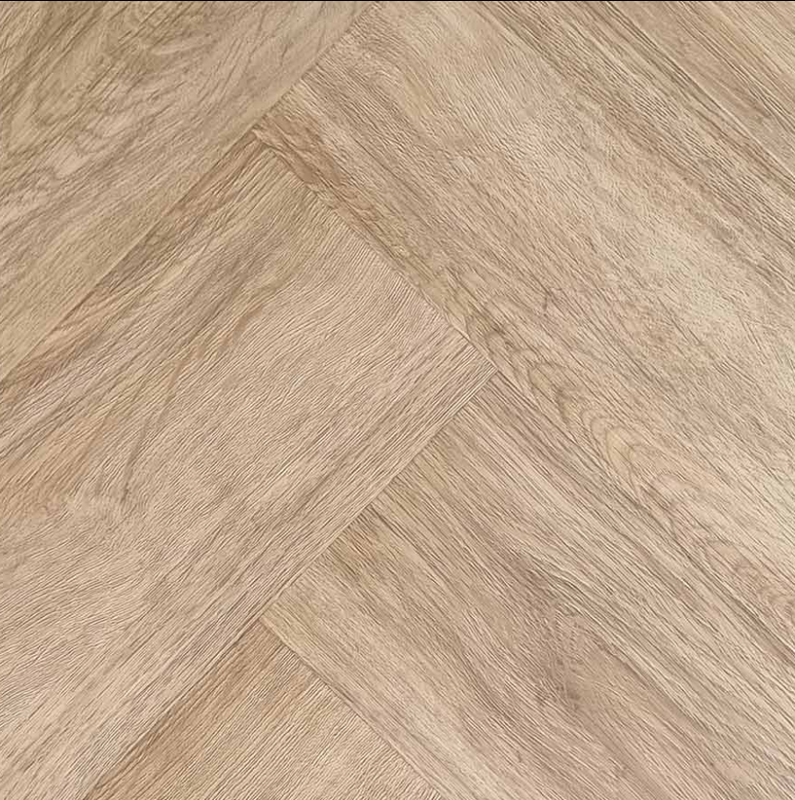 Sand Oak Visgraat is een hoogwaardige design vinyl vloer die verlijmd kan worden op de ondervloer. De planken zijn op verschillende manieren te leggen zoals visgraat, dubbele visgraat, blokken maar ook als normale korte planken.