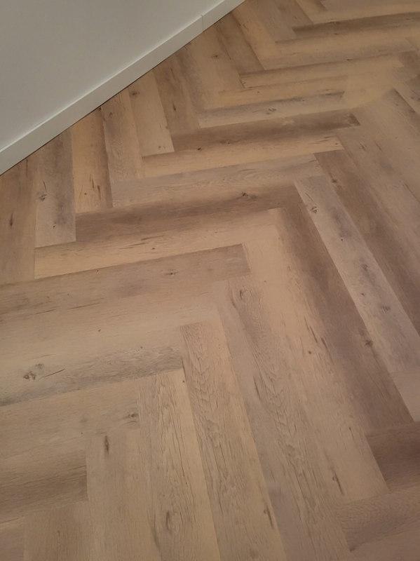 Nougat Oak Visgraat is een hoogwaardige design vinyl vloer die verlijmd kan worden op de ondervloer. De planken zijn op verschillende manieren te leggen zoals visgraat, dubbele visgraat, blokken maar ook als normale korte planken.