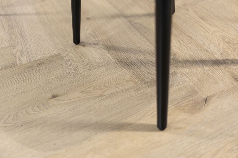 De Identity LVT (PVC) voerbedekking collectie bevat zowel planken als tegels in allerlei kleuren en maten. Met zijn embossed structuur met groeven en noesten die voelbaar zijn aangebracht in de bovenstructuur van het materiaal, zodat het voelt als echt hout of steen. LVT is onderhouds vriendelijk en is bestand tegen water en geschikt voor vloer verwarming. Note : We raden u aan om op deze vloer zachte wieltjes (type-W) te gebruiken. HQ Identity Authentic Visgraat-8017ook verkrijgbaar in Plank 121.92 cm x 22.86 cm (Rustique1113)