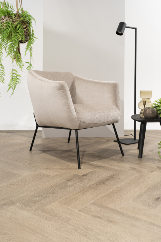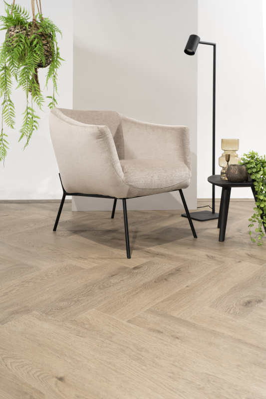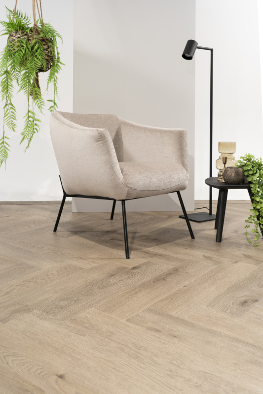 HQ Identity Authentic Visgraat, 8018, Pak á 3,484 m2; Afmetingen 76,2 cm x 15,24 cm x 2,5 mm De HQ Identity Heritage visgraat dryback is een mooi gevarieerde pvc vloer met met 8 verschillende eiken variaties van licht tot donker vloer is geschikt voor vloerverwarming tot max 27°C. Alle planken hebben aan 4 zijden een microvelling. Note : We raden u aan om op deze vloer zachte wieltjes (type-W) te gebruiken. HQ Identity Authentic Visgraat-8011 ook verkrijgbaar in Plank 121.92 cm x 22.86 cm (Rustique 1114)