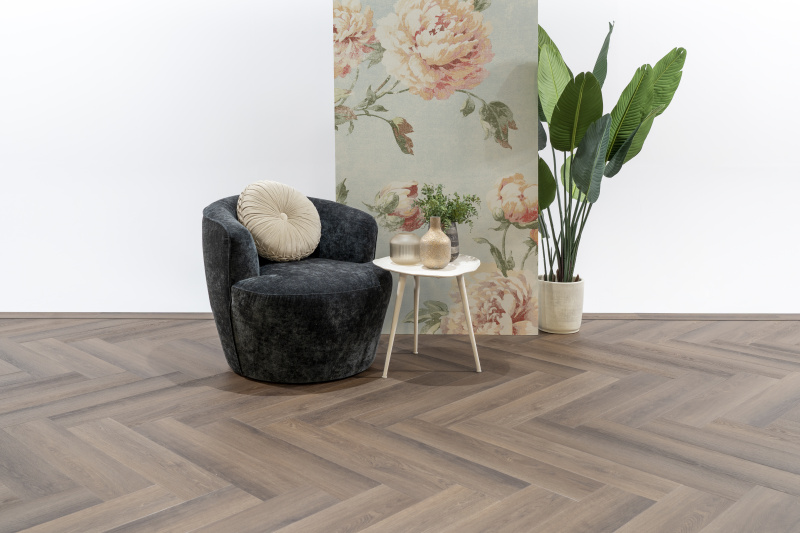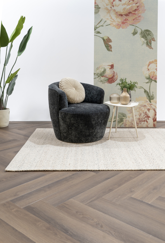 Identity Heritage Visgraat, 6050, Pak á 3,48 m2; Afmetingen 76,2 cm x 15,24 cm x 2,5 mm De HQ Identity Heritage Visgraat Plank dryback is een mooi gevarieerde pvc met met 8 verschillende eiken variaties van licht tot donker vloer is geschikt voor vloerverwarming tot max 27°C. Alle planken hebben aan 4 zijden een microvelling. Note : We raden u aan om op deze vloer zachte wieltjes (type-W) te gebruiken.