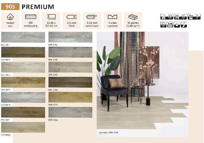 HQ Identity Premium Plank, 5015, Pak á 3,48 m2; Afmetingen 152,4 cm x 22,86 cm x 2,5 mm De HQ Identity Premium Plank 5015, dryback is een mooi gevarieerde pvc met met 13 verschillende eiken kleur variaties van licht tot donker vloer is geschikt voor vloerverwarming tot max 27°C. Alle planken hebben aan 4 zijden een microvelling. Note : We raden u aan om op deze vloer zachte wieltjes (type-W) te gebruiken.